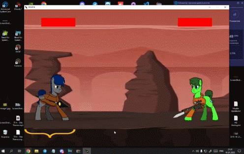 Описание: WildHit — маленький файтинг с персонажами из фанфика и на данный момент незаконченного комикса «Дикие». Игрушка написана полностью на языке Python с использованием библиотеки pygame. В данной версии игры доступны два персонажа из источника и один бонусный персонаж. В режимах игры можно выбрать игру для двоих или бой с компьютером.