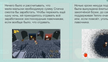 The Little Match Filly (?)Это второй из фаворитов, где меня ужасно бесило существование псов и то, чем они тут занимались. Пару раз сталкивался с ситуациями, когда выпрашивал у прохожих монетку прямо перед проходом на улицу и был вынужден с тоской наблюдать, как ко мне приближается эта псина, чтобы эту честно заработанную монетку у меня забрать. В остальном концептуально это очень хорошая игра, которая гармонична во всём, что касается игрового процесса, но не во всём, что касается всего остального. Конкретно меню просто глаза мозолит с этими кнопками и базовым шрифтом. Хотя я и сам не лучше, у всех пользователей в моей игре мой шрифт скатывается на дефольтный. Но блинб, ты же лучше меня, чел. Меню можно было бы и доработать, потому что на фоне всей остальной игры выглядит оно халтурно. Даже выхода толком нет, не круто. Инструкция, переплетённая с сюжетной подоплекой, доставила, прикольная. Музыка простая и милая, за неё респект. Кто писал музыку, тот молодец.
