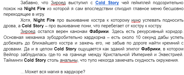 И всё же определись, Frostpony Clicker ты ставишь 7,5 или 1? И отмечу, что у Cold Survival ты тоже оценку не поставил