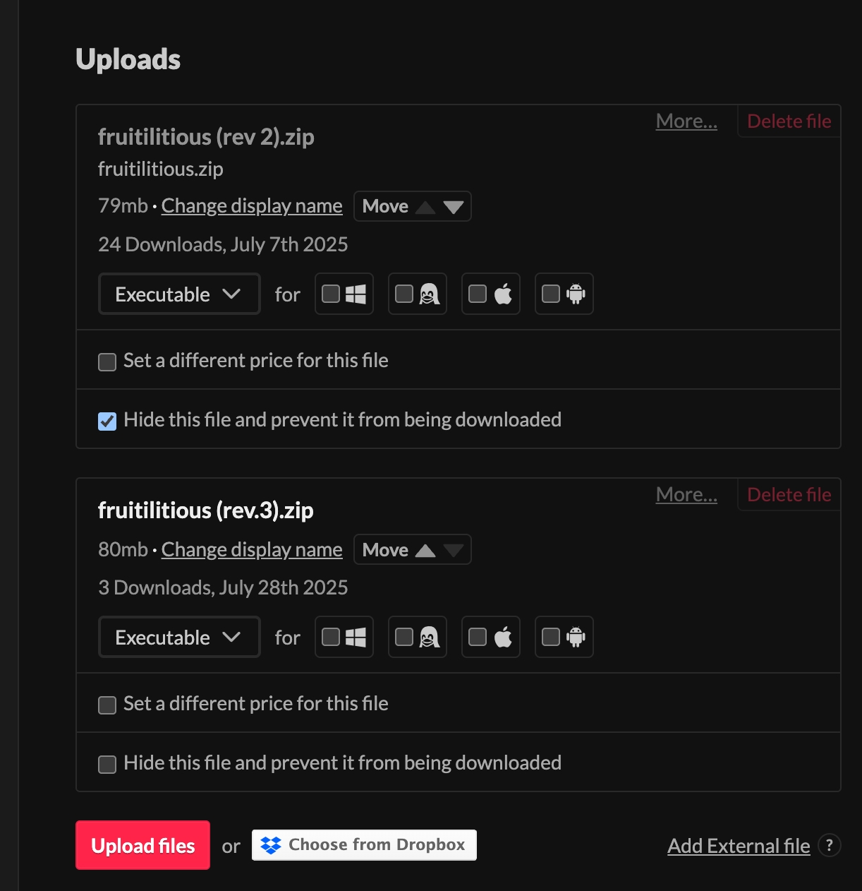 А если сначала удалить старый файл игры, а потом отправить новый, то это, вроде, не засчитывается как обновление