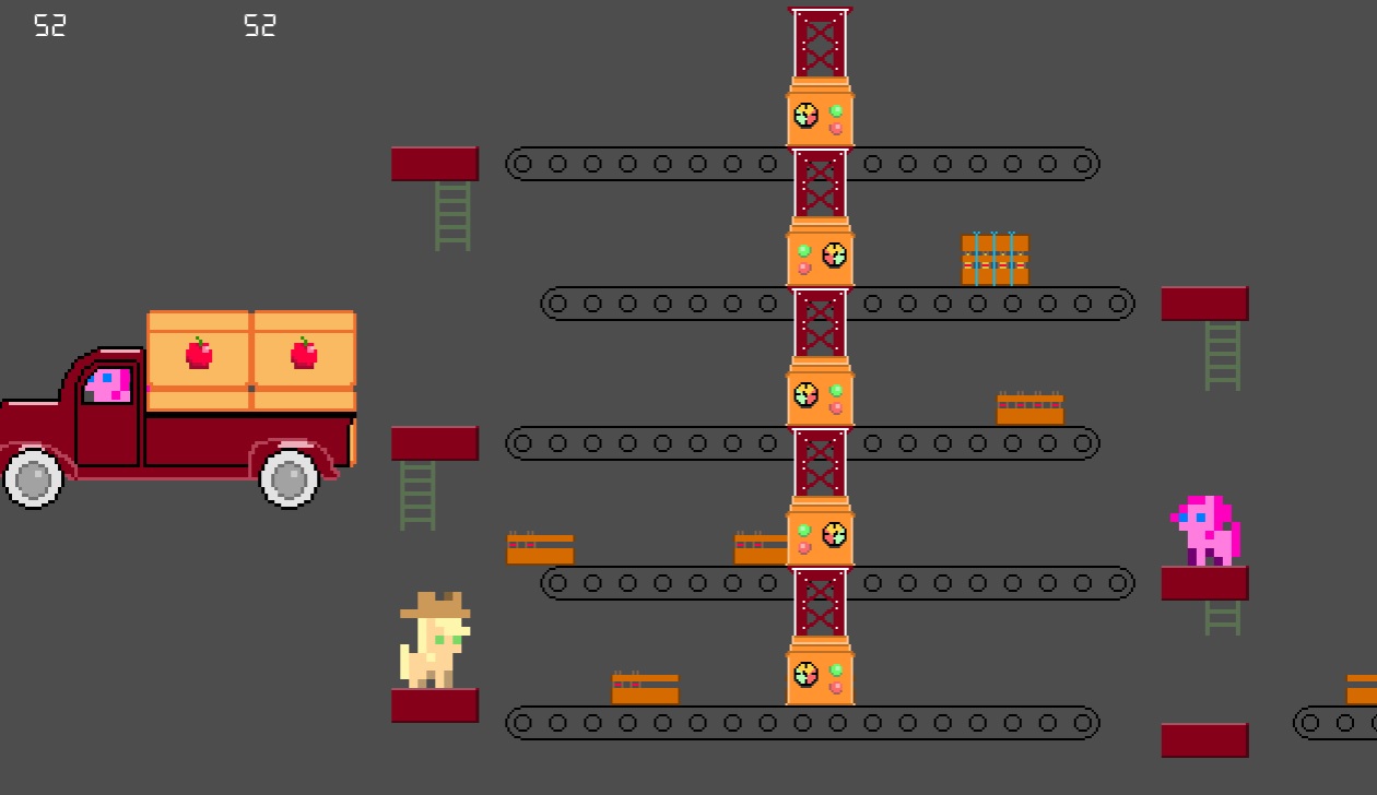 ссылка (можно только с браузера)Описание: Помогите Эпплджек и Пинки сложить ящики с яблочным сидром, чтобы Пинки (??) могла отвезти их неизвестно куда. Игра подразумевает локальный мультиплеер на двоих, но и в одиночку прикольно поиграть (это прям вызов на внимательность и координацию)