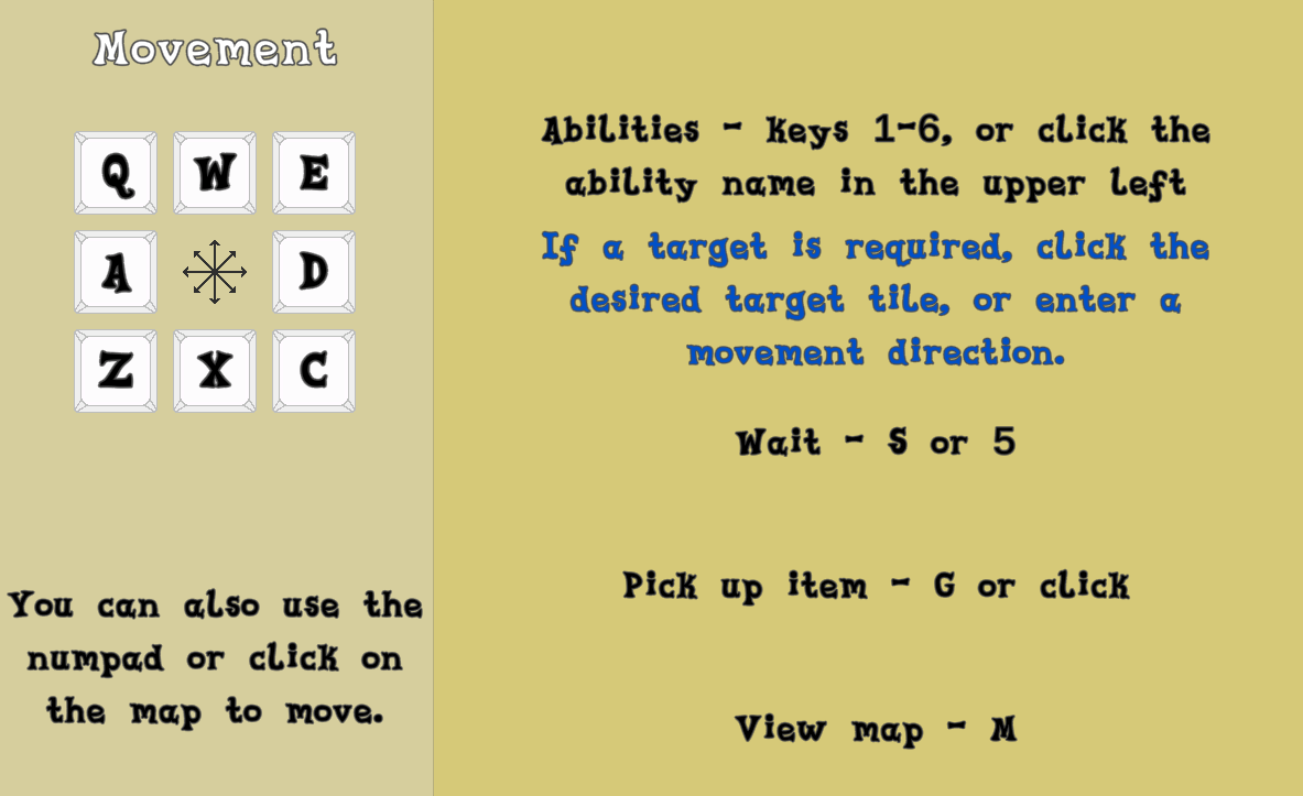 В начале игры, и если проиграть, внизу будут подсказки, которые прочитываются клавишей Enter