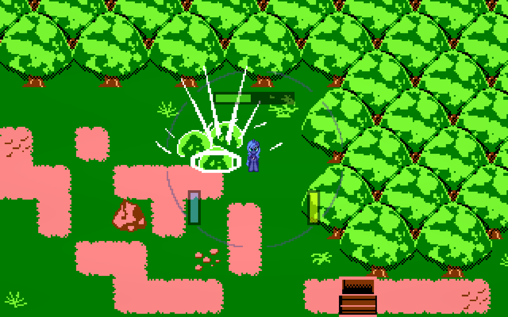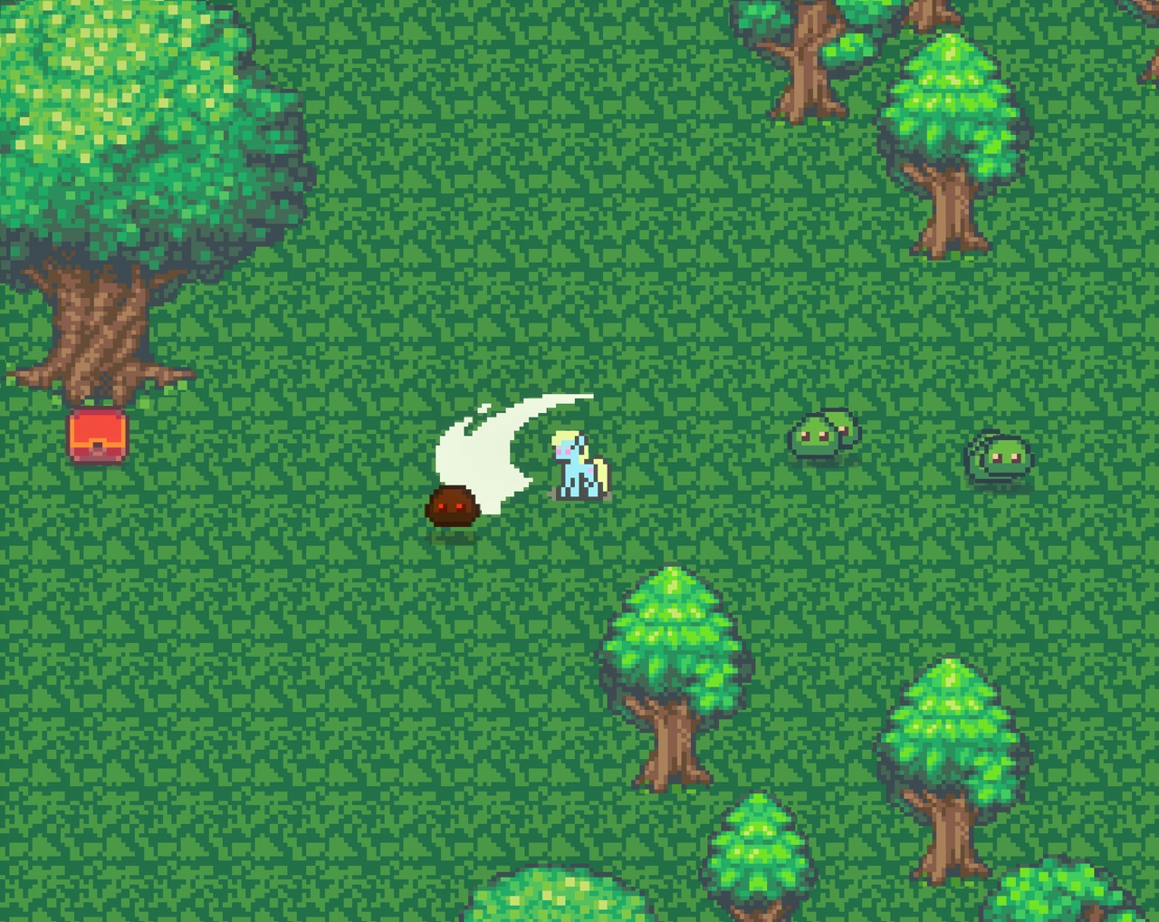 Примеч. автора: Для меня это тоже своего рода доказательство того, что в RPG Maker можно создать быструю экшн-игру в реальном времени, которая не будет казаться неповоротливой сранью и не потребует абсурдного количества усилий для поддержки. Так что вот, одиночная карта продолжительностью 5-10 минут с несколькими небольшими боями.
