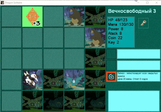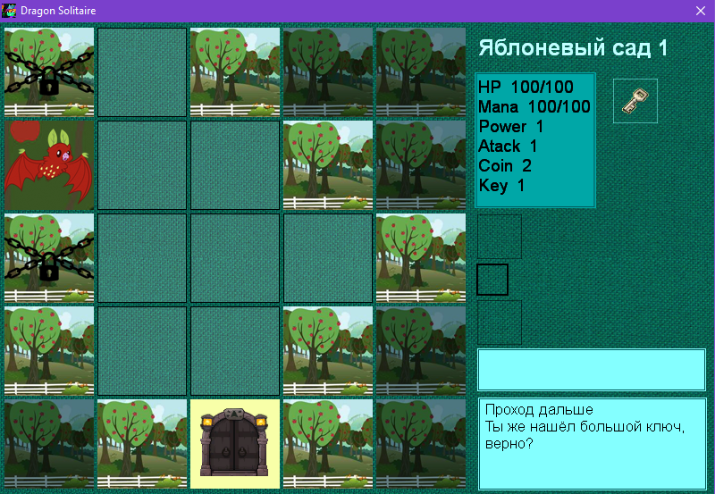 ссылкаДраконий Пасьянс это карточная игра, цель которой, открывая все карты на поле, найти большой ключ и выход, чтобы перейти на следующий уровень.