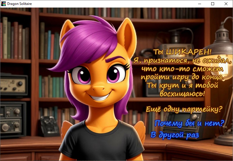 Итоги: а собственно не знаю, что добавить. Ну такое, приключеньице небольшое. На самом деле было бы лучше, будь в ней меньший упор на мемасы и чуть лучше дизайн интерфейса.