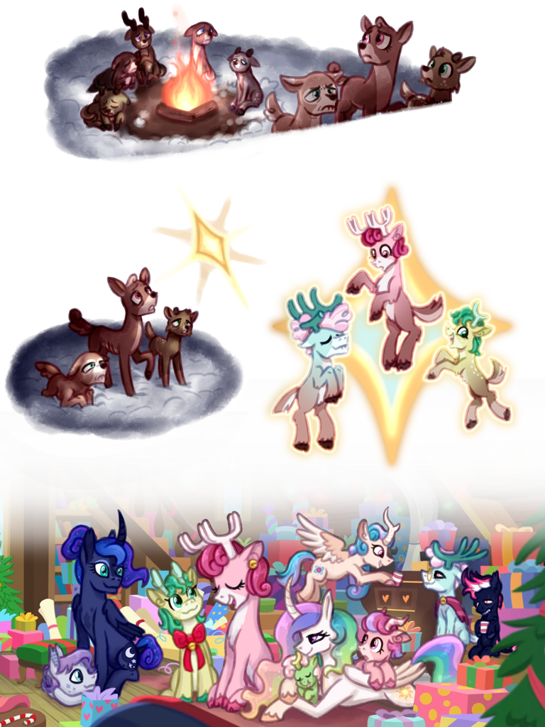 Там всё нарисованно! Они отделились от своего стада и нашли звезду (и Эквестрию), а теперь рассказывают историю принцессам