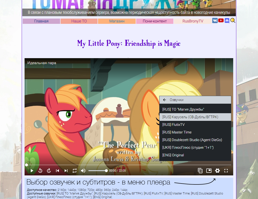 Меня устраивал всё кроме дубляж Карусель, поэтому только поняшек смотрю с субтитрах и фандабе