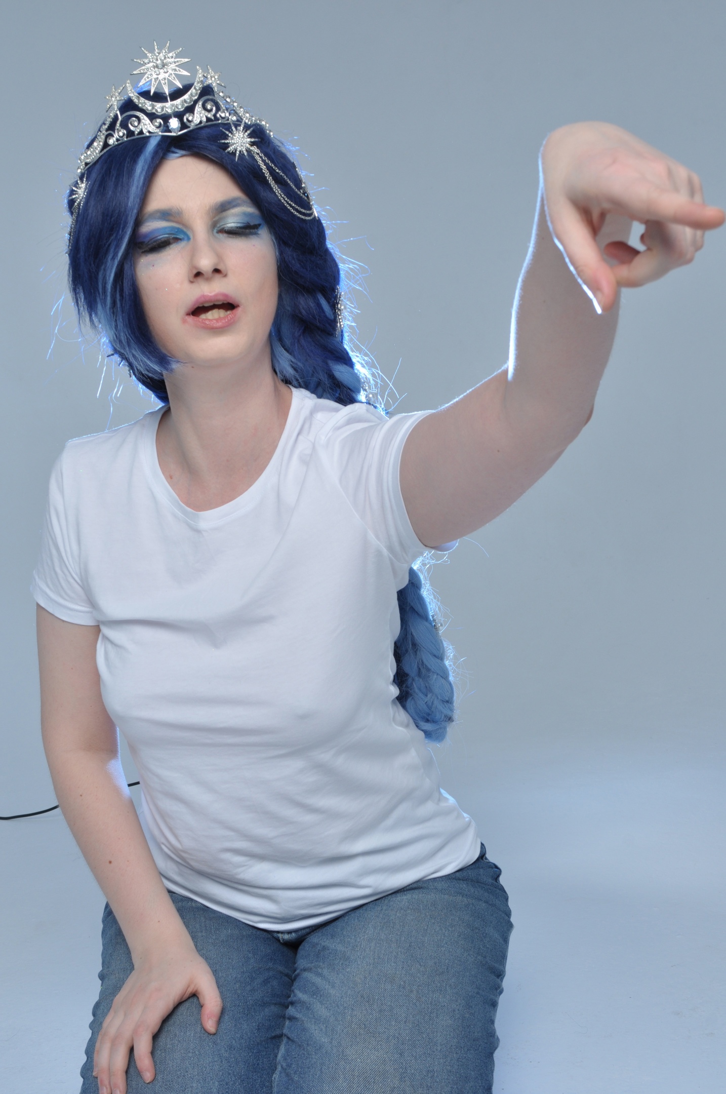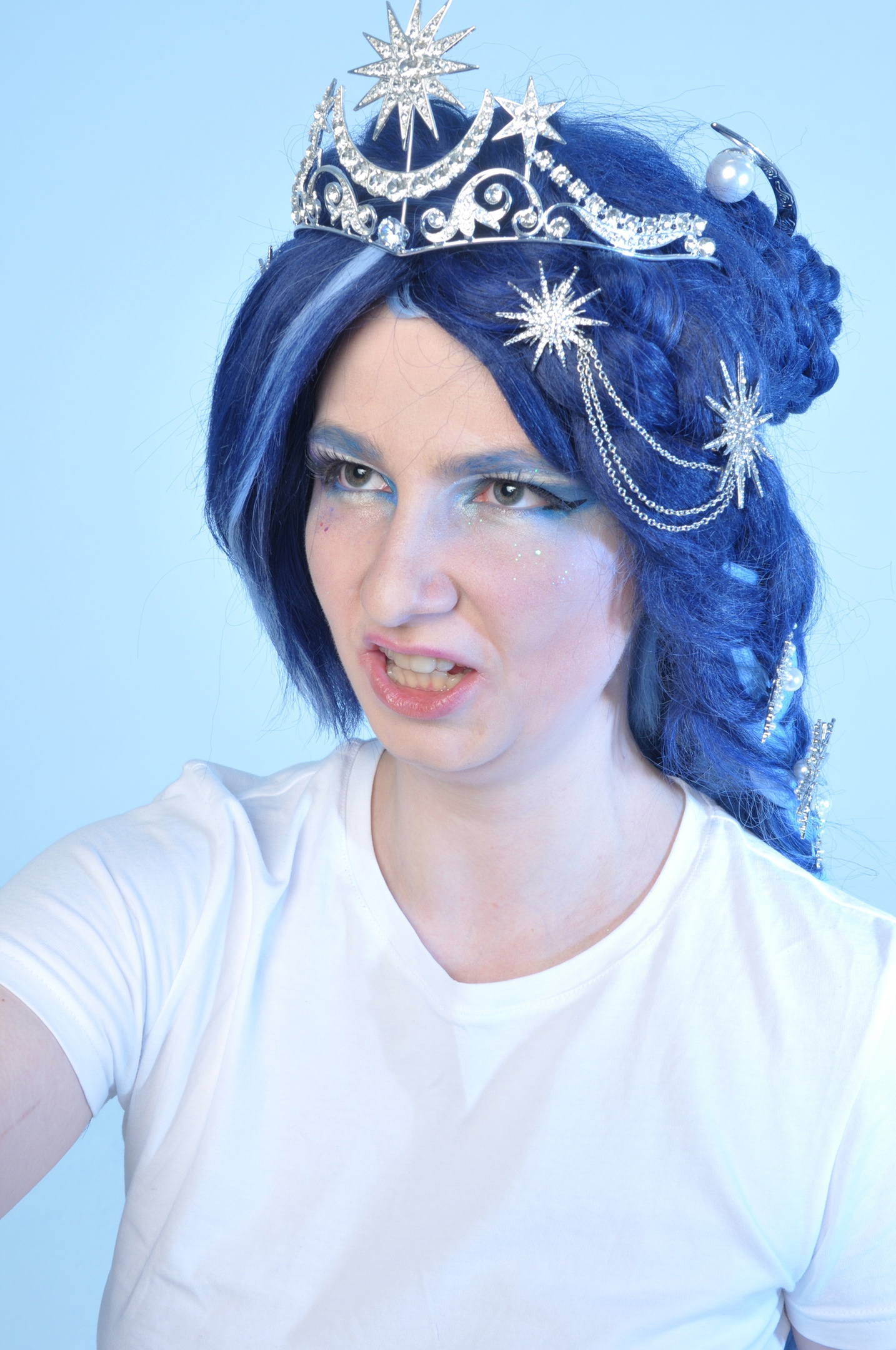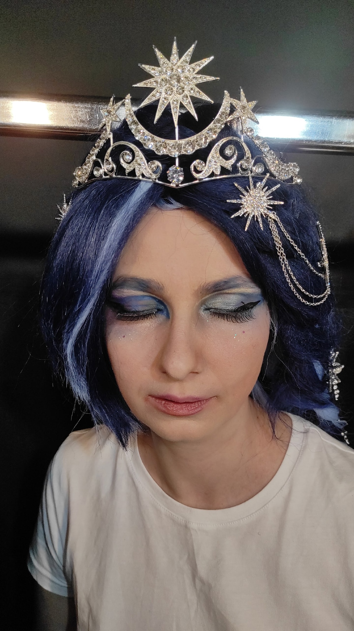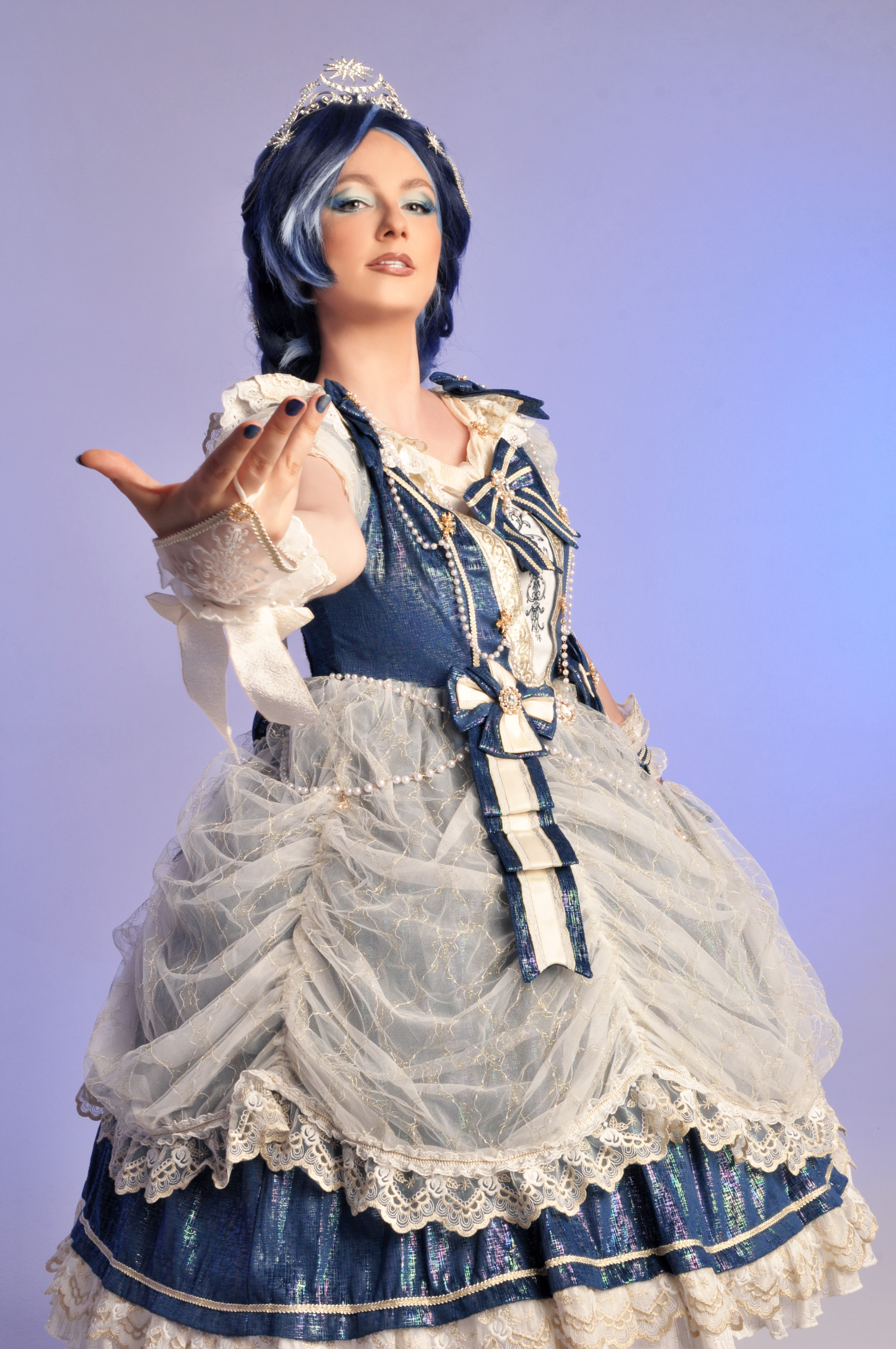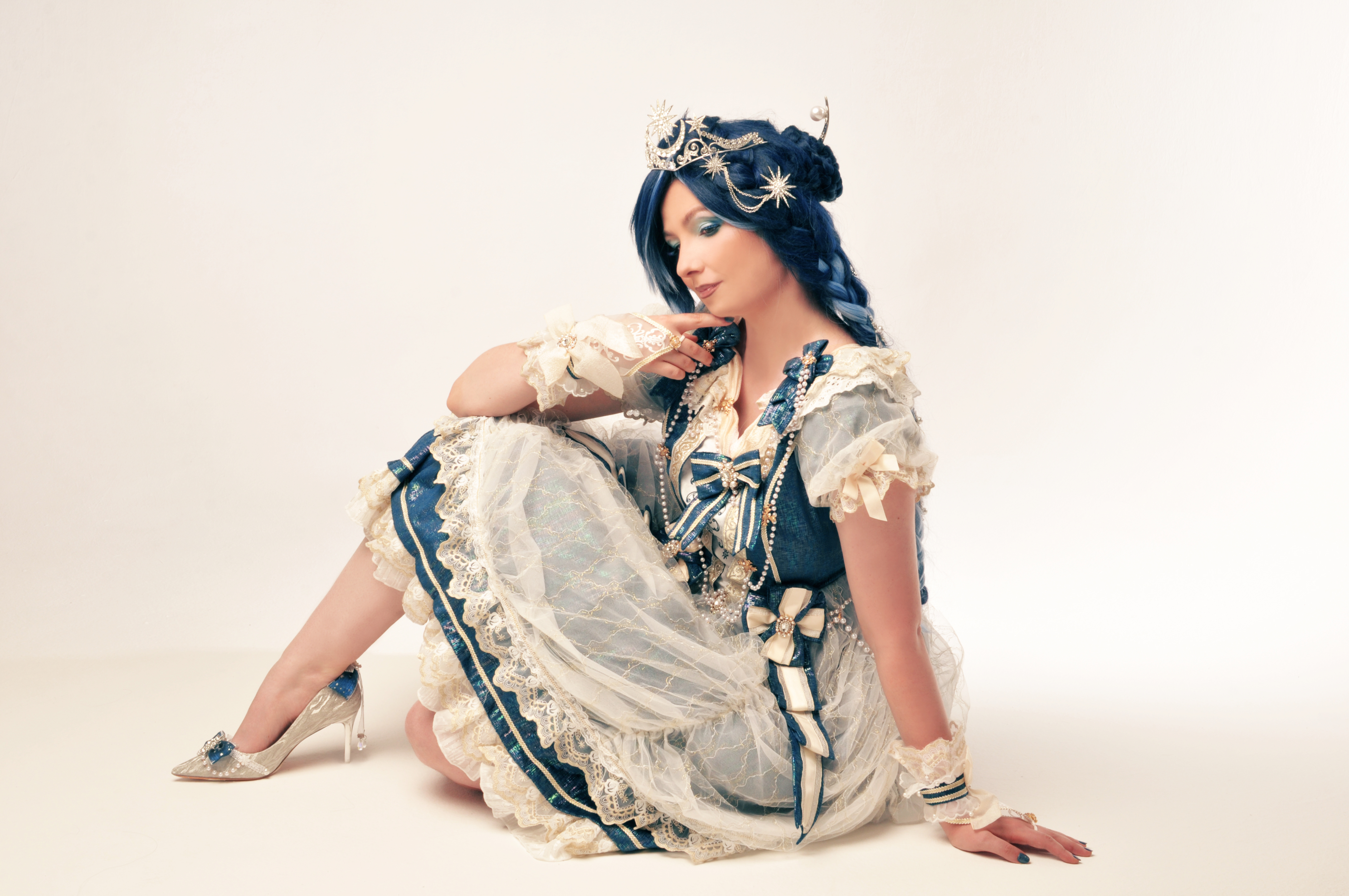 Говоря о Луне, тут всё просто. Как видно из первоначального эскиза, за основу брался стиль лолита, открытые ноги (мы ведь изначально собирались танцевать). И два каноничнейших образа Елизаветы Австрийской, они же Сисси. Её знаменитый портрет со звездами и её же коронационное платье. Эти элементы, в общем-то, встречаться были не должны, ибо были в разное время и место, но увы, отсылку к Сисси без звёзд никто бы не понял совсем. Её и со звёздами-то, мне кажется, мало кто считал.