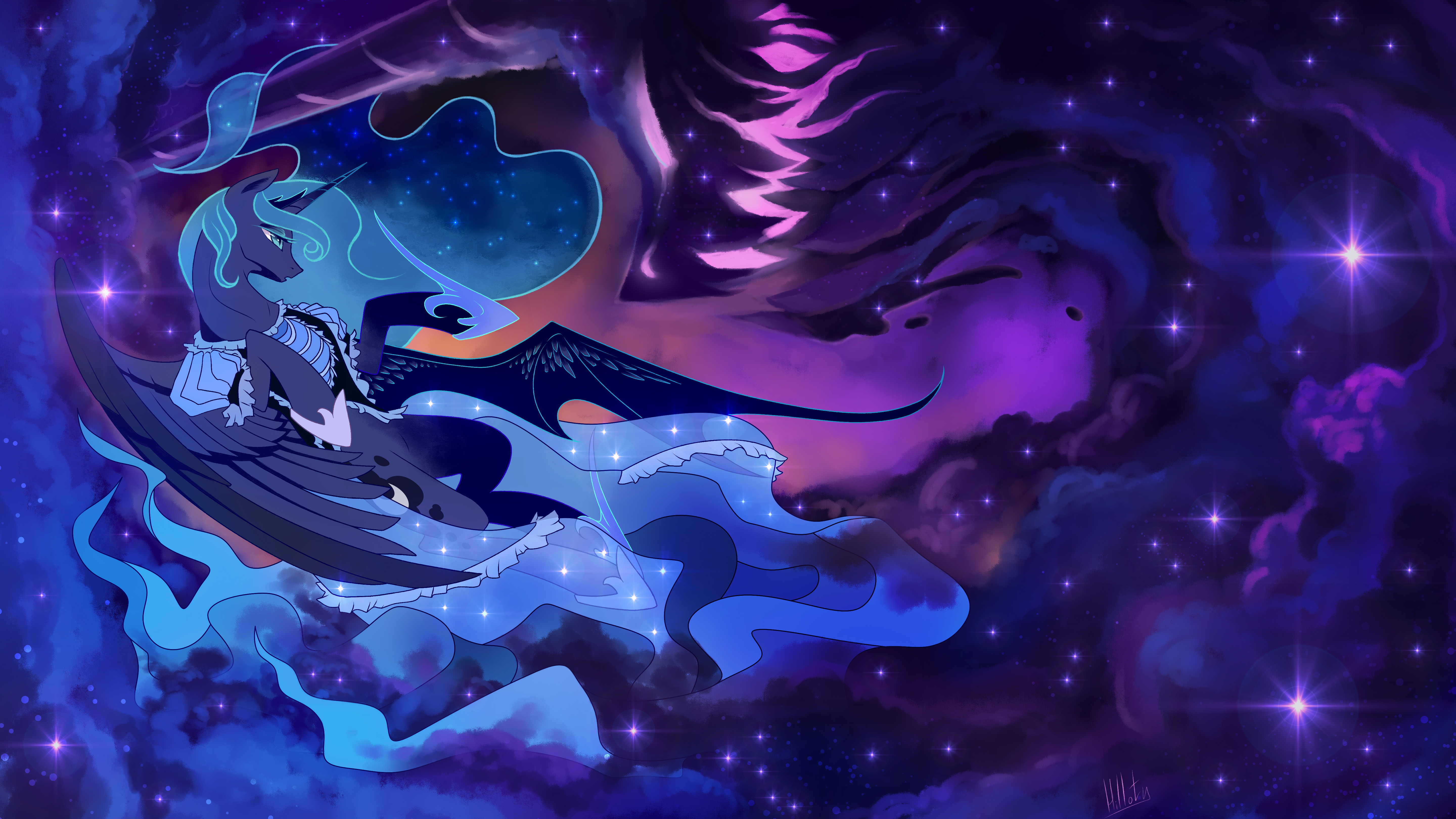Лис долго сомневался, кто в паре должен доминировать в итоге. По оригиналу — всё же Луна (в этот раз). Но три минуты оригинала не влезали в регламент, да и к лучшему, пожалуй, ибо разобрать наслоение голосов в последнем куплете — задачка не просто со звёздочкой, а просто звездец.