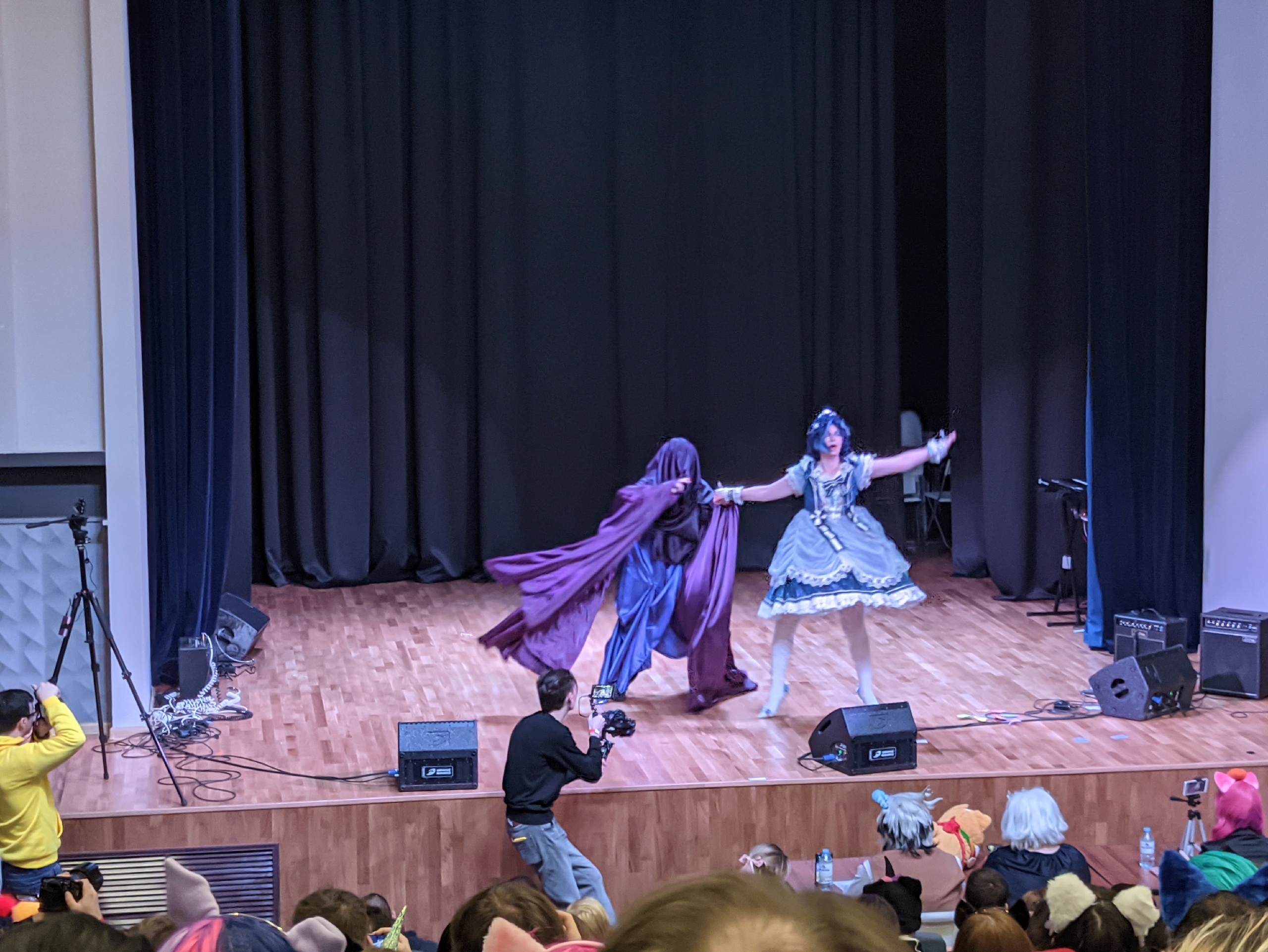 Часть 2. Плюс-минус логично вытекающая из музыкальной. МизансценаЯ не сказать чтобы особенно следила за размерами сцены на дефиле прошлых пони-мероприятий, но помнилось, что они не прямо чтоб просторные. И первые опыты постановки шли просто в зале, ибо «ну, рассчитываем на квадратик примерно 2*2 чистого места!»