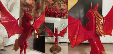 Затем красим фестрала и его крылья в красный с оранжевыми разводами: