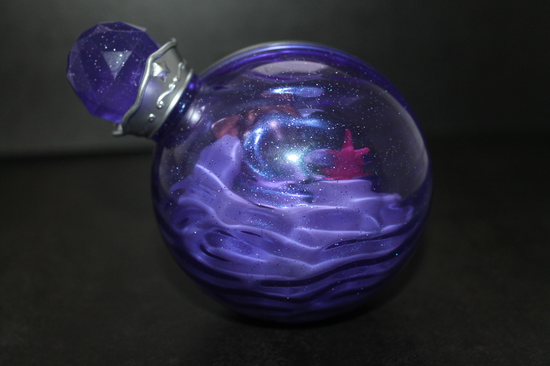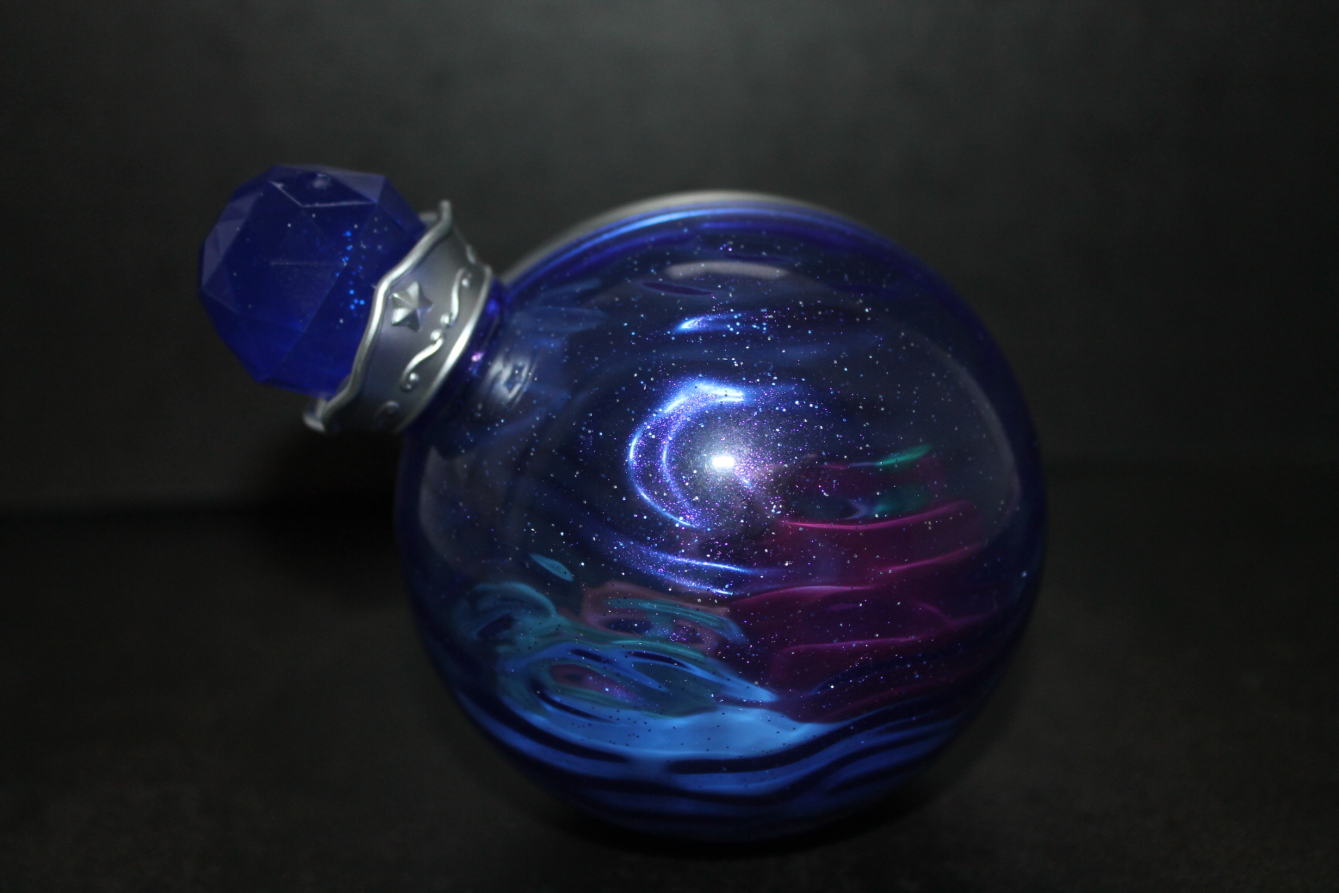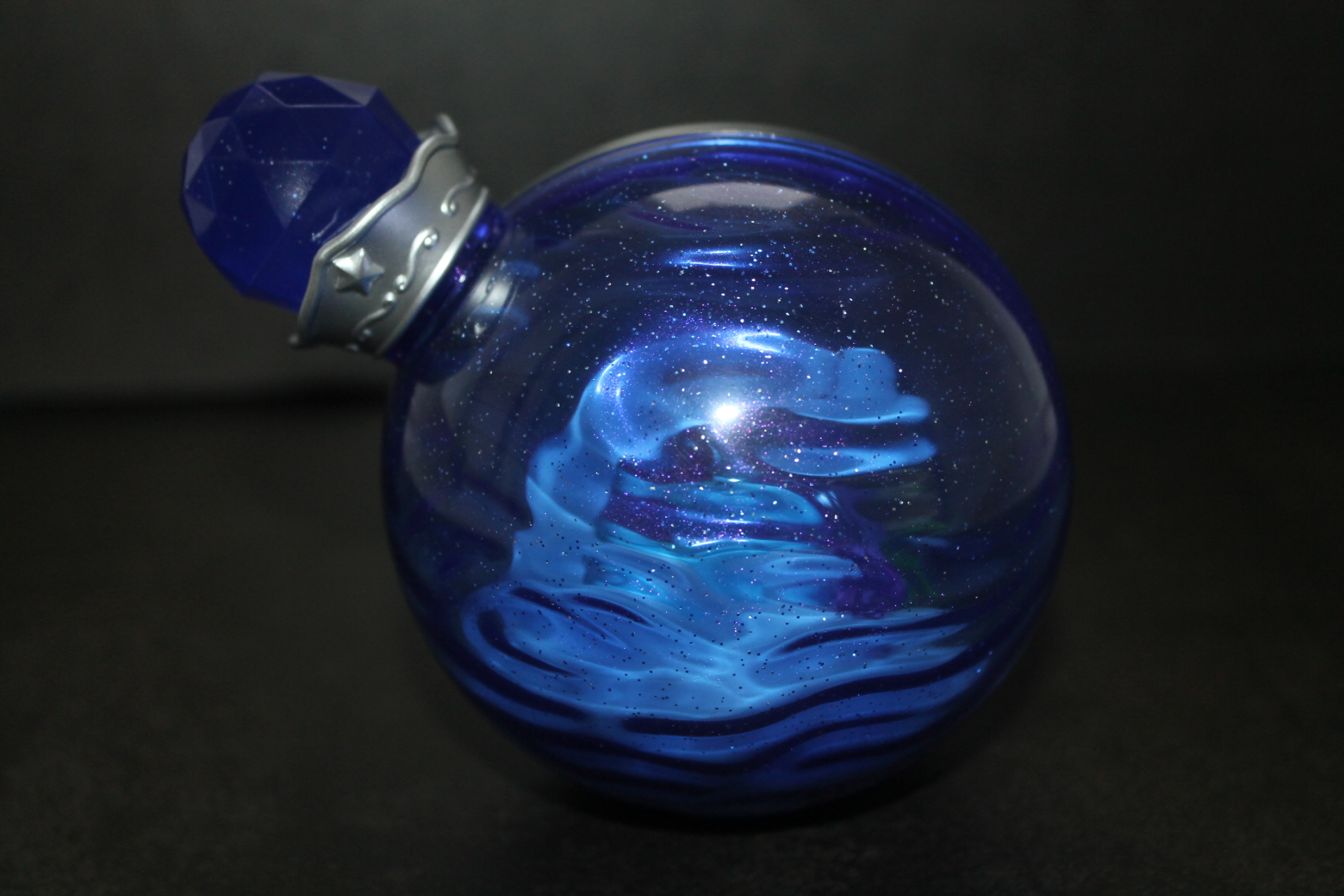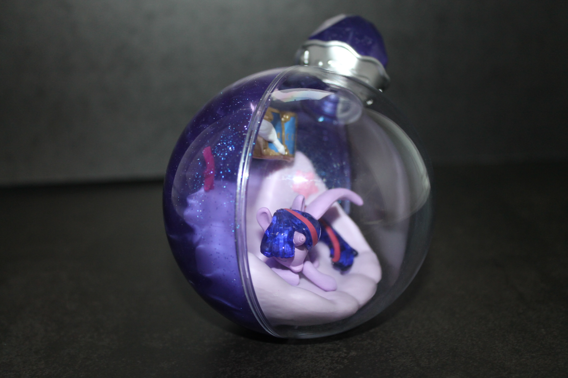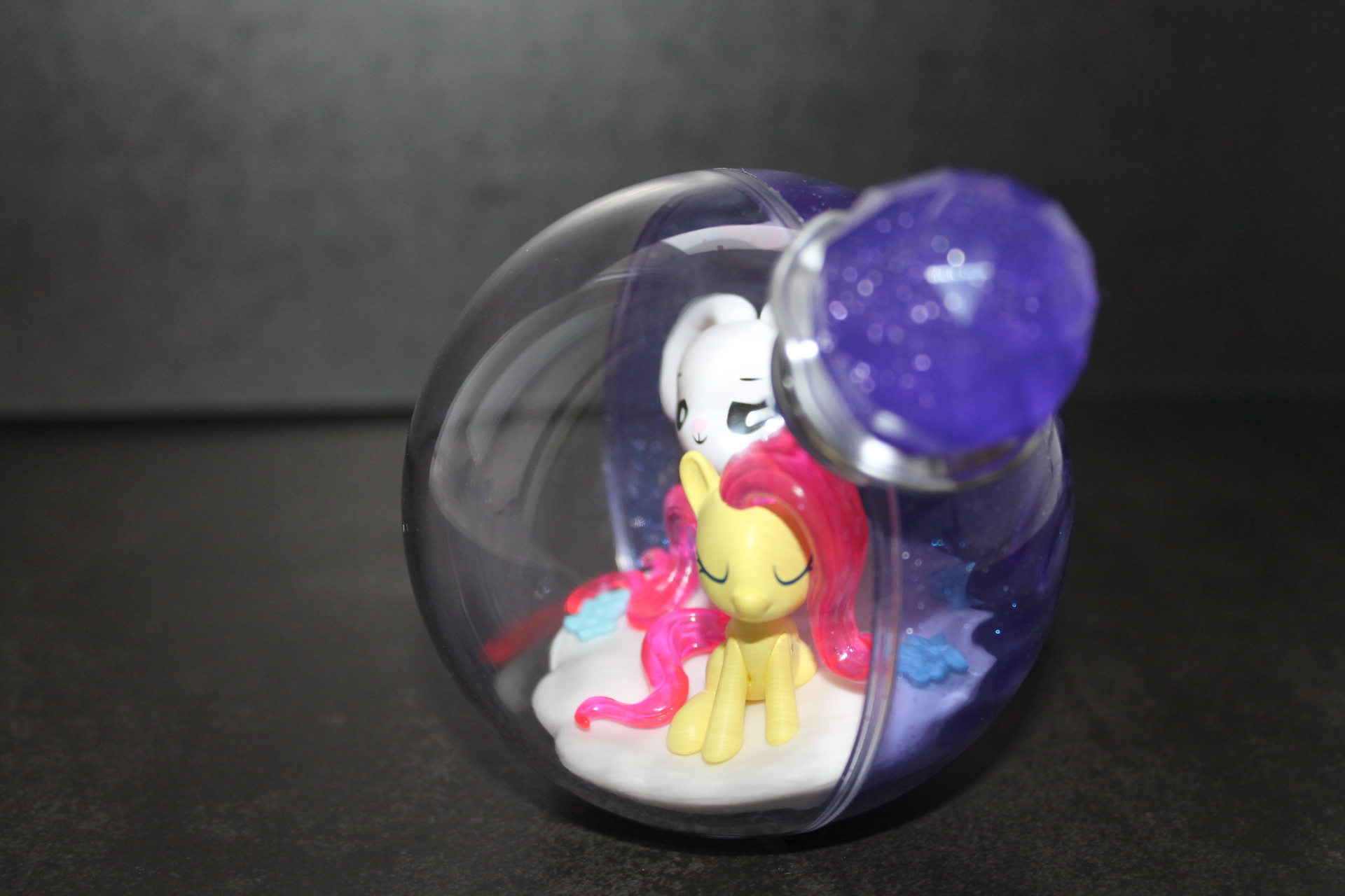 Если в прошлой волне задняя сторона бутылочек была разноцветной, то теперь они все одинакового сине-фиолетового оттенка, примерно, как у Рэрити ранее, к тому же, теперь внутрь пластика цветной части колбы добавили блёстки. Бутылочки теперь плотно закрыты пробкой и из них ничего не «вытекает». При этом на полке они могут стоять вполне устойчиво, благодаря горизонтальному участку в основании сферы. Можно ли вынуть пробку я не пробовал, вероятно да, и тогда половинки бутылочки можно будет безопасно разделить, если это кому-то понадобится. Кстати, многие элементы окружения внутри бутылочек являются прямой отсылкой к снами пони в 13-й серии 5-го сезона «Do Princesses Dream of Magic Sheep?». Угадаете какие именно?