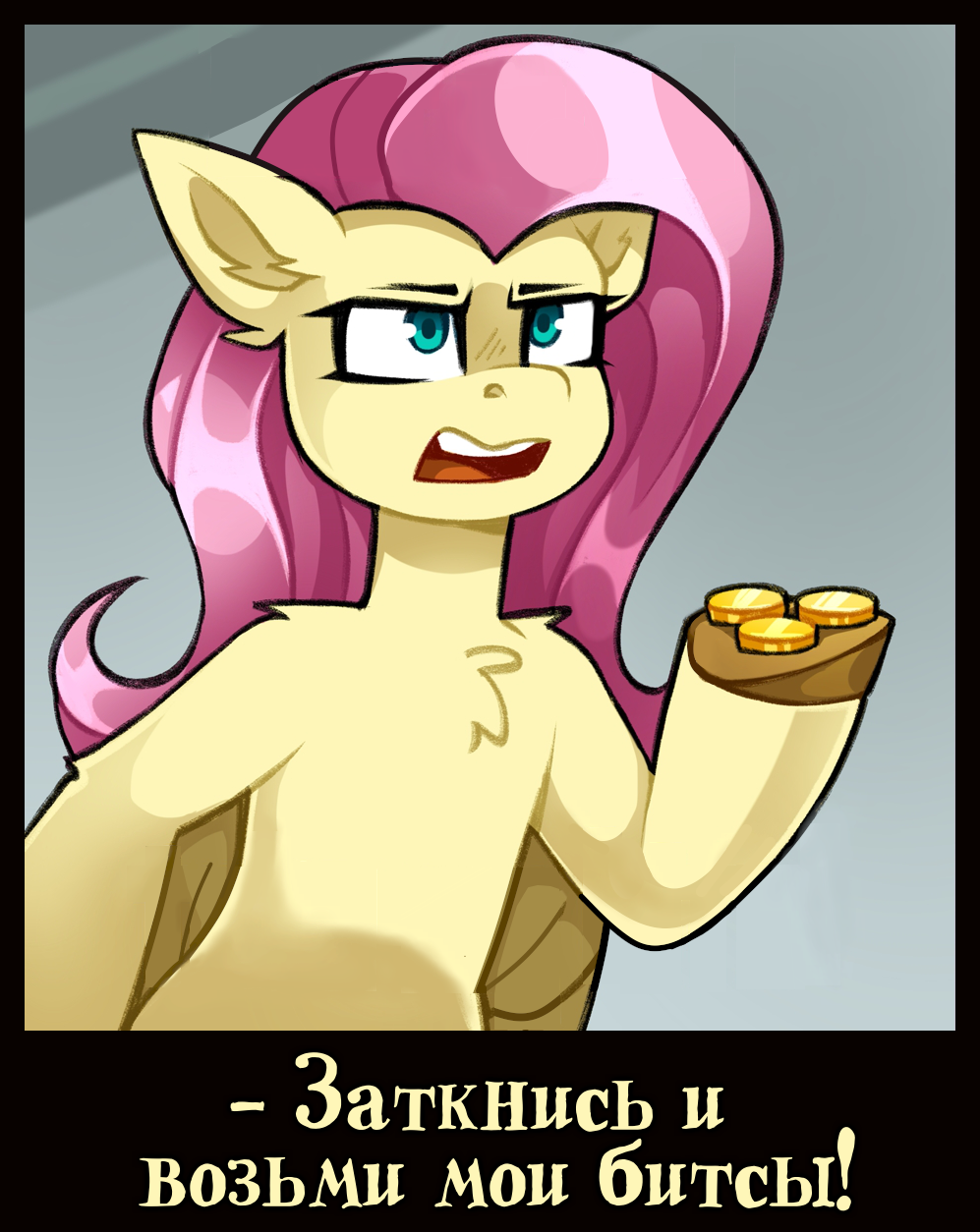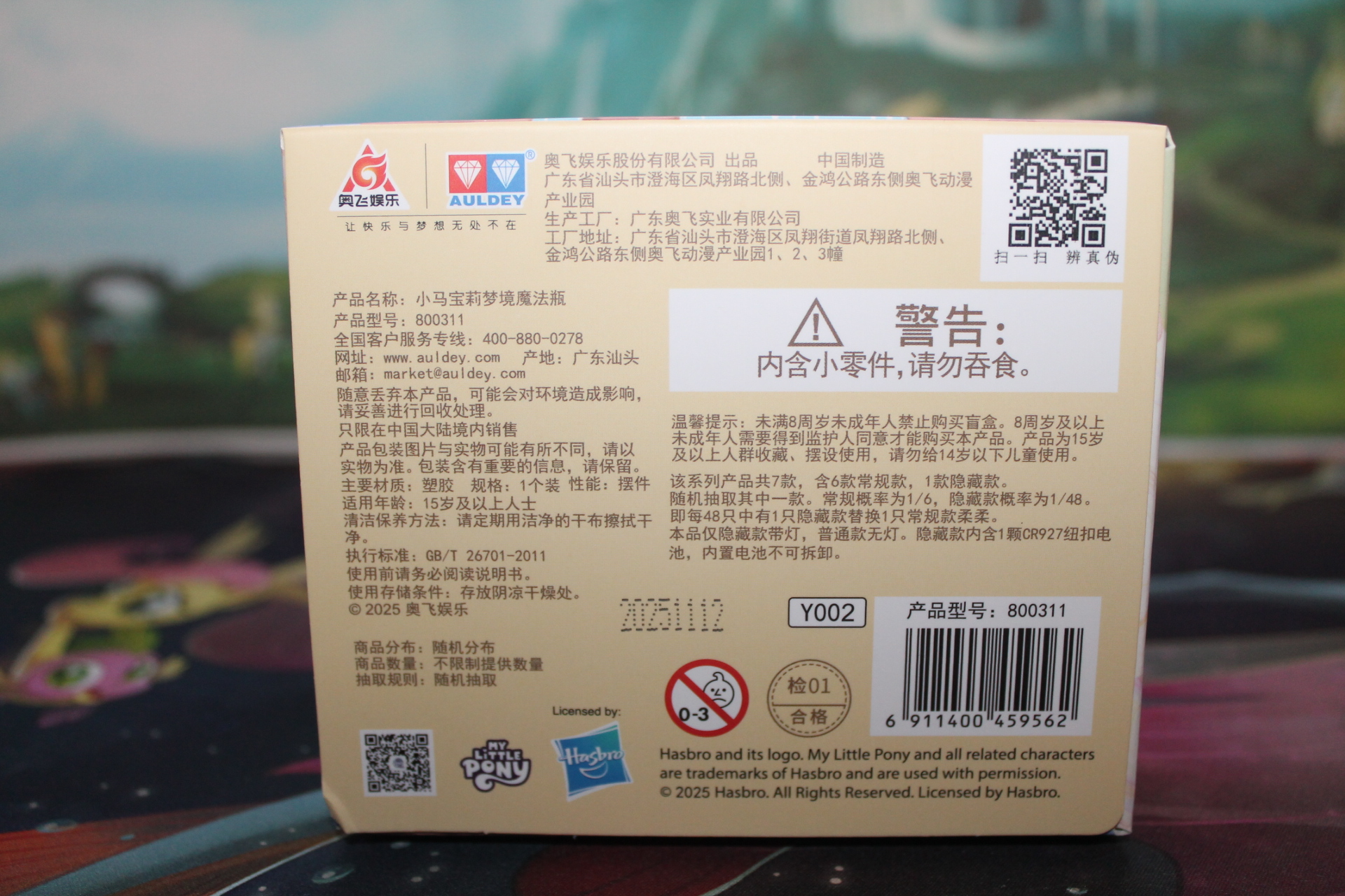 Передняя (снизу) и задняя стороны содержат рисунки дремлющих пони и состав волны, где можно рассмотреть отличия редкой Флаттершай от стандартной.
