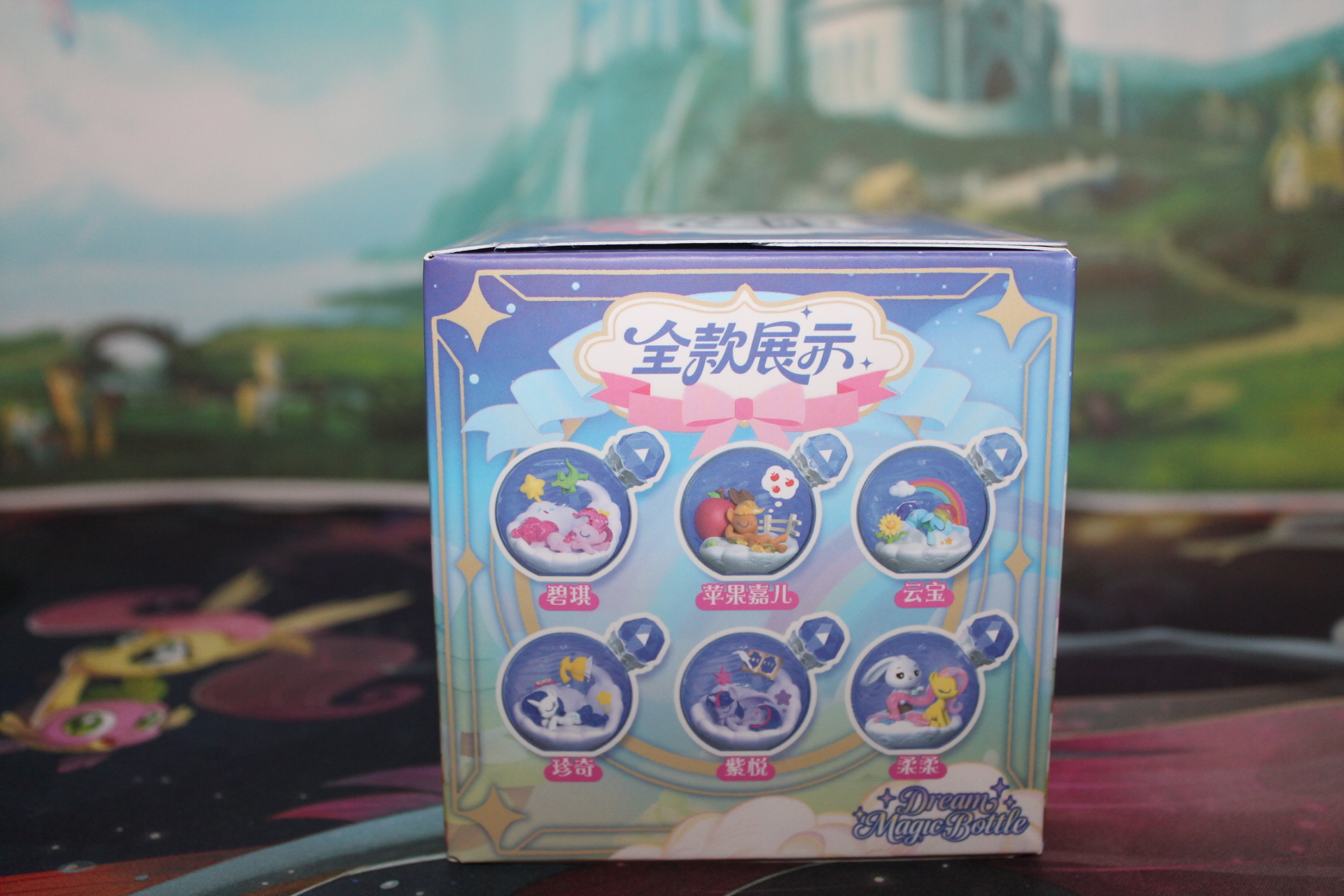 УпаковкаУпаковка фигурок практически не отличается от первой волны, не считая изображений. На крышке коробок теперь появилось официальное название на английском «Грёзы в магических бутылочках» или «Магические бутылочки сна».