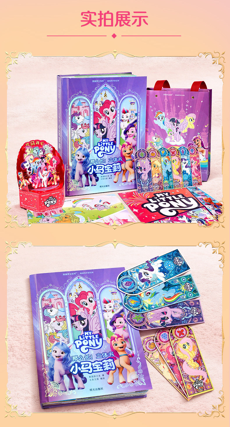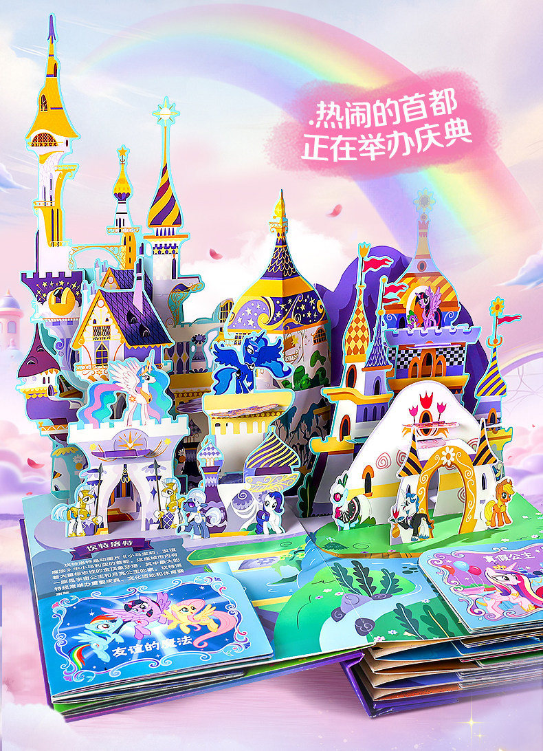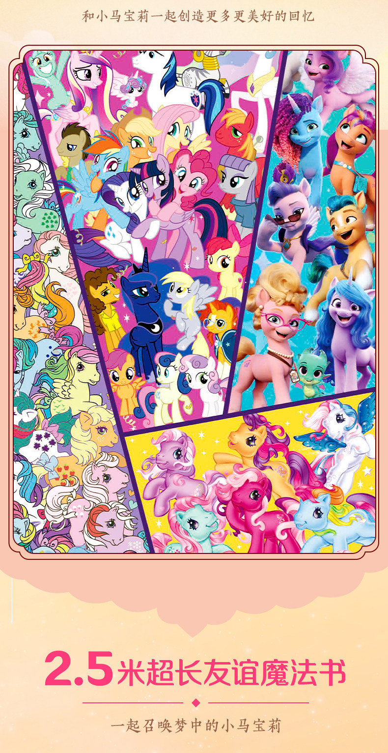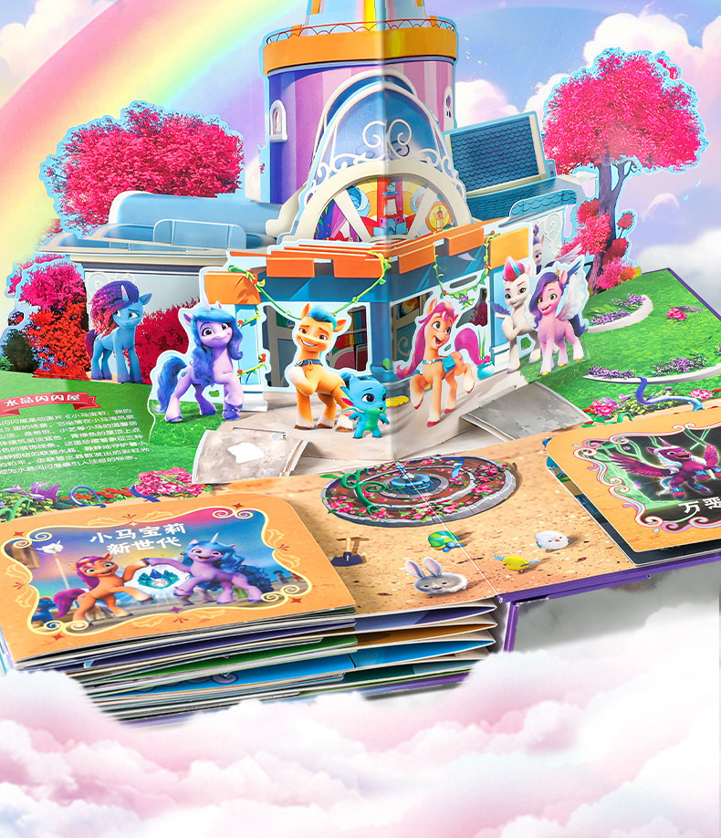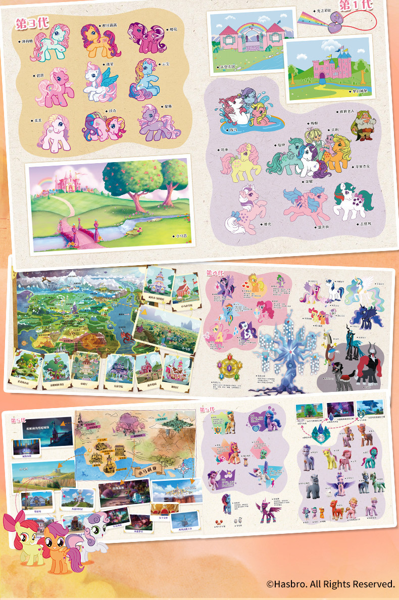 Немного запоздалая, но всё же интересная новость. В декабре прошлого года на внутренней китайской барахолке Taobao была обнаружена книжка-раскладушка или панорамная книга (книга с объёмными иллюстрациями), посвящённая всем вышедшим поколениям франшизы My Little Pony, за исключением G2. Нечто похожее мы могли наблюдать в далёком 2015 году, в книге My little pony: Замки Эквестрии за авторством Мэтью Рейнхарта. Помимо книги в комплект поставки входят пара постеров, набор закладок, объёмная открытка и сумка для переноски.