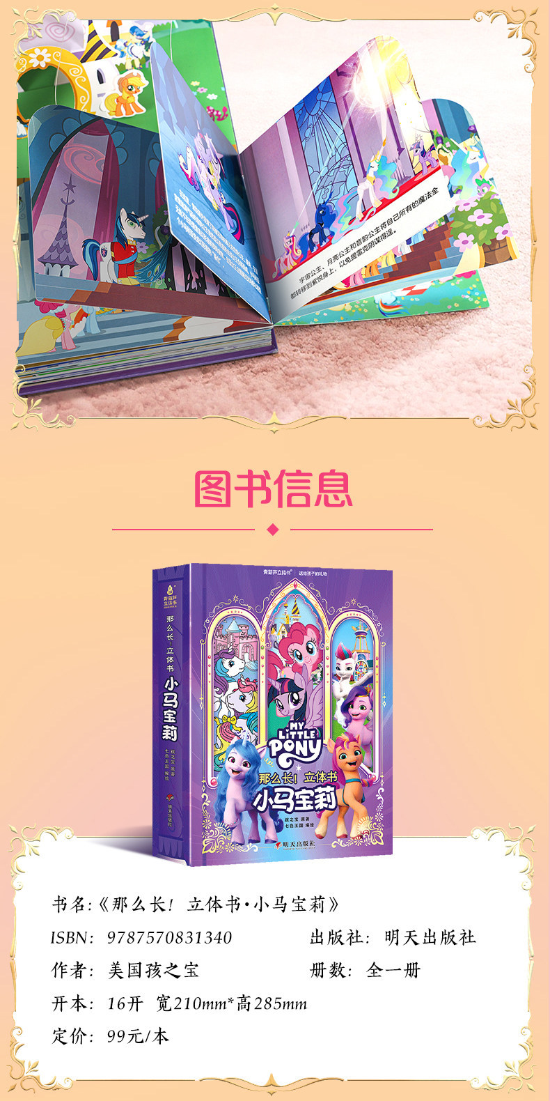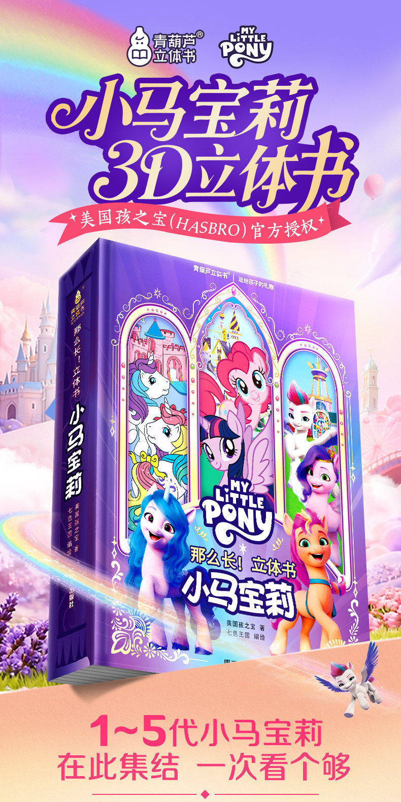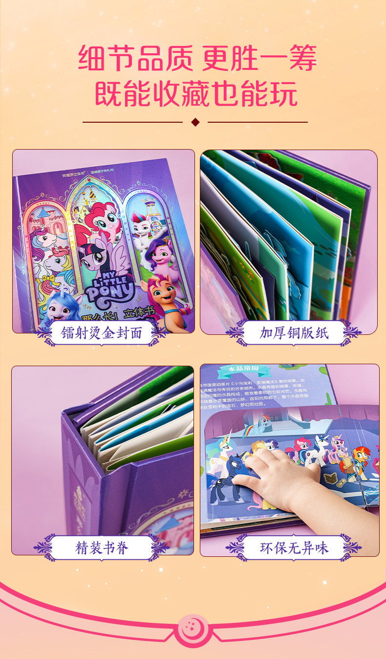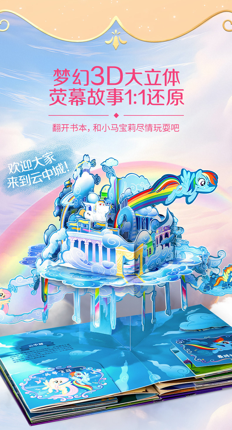 Немного запоздалая, но всё же интересная новость. В декабре прошлого года на внутренней китайской барахолке Taobao была обнаружена книжка-раскладушка или панорамная книга (книга с объёмными иллюстрациями), посвящённая всем вышедшим поколениям франшизы My Little Pony, за исключением G2. Нечто похожее мы могли наблюдать в далёком 2015 году, в книге My little pony: Замки Эквестрии за авторством Мэтью Рейнхарта. Помимо книги в комплект поставки входят пара постеров, набор закладок, объёмная открытка и сумка для переноски.